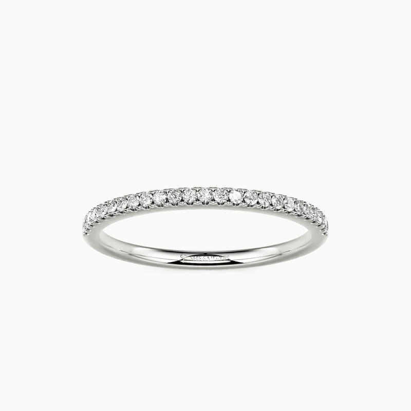 A truly classic wedding ring lined with sparkling stones in a shared prong setting. This gorgeous ring is sure to capture her heart with this elegant design and brilliant stones. Also great as an anniversary band or a stacker ring.