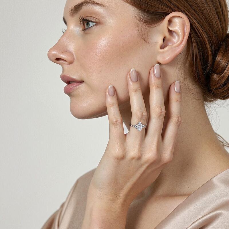 "The Fearless Love" Marquise Cut Cluster Side Stone Engagement Ring