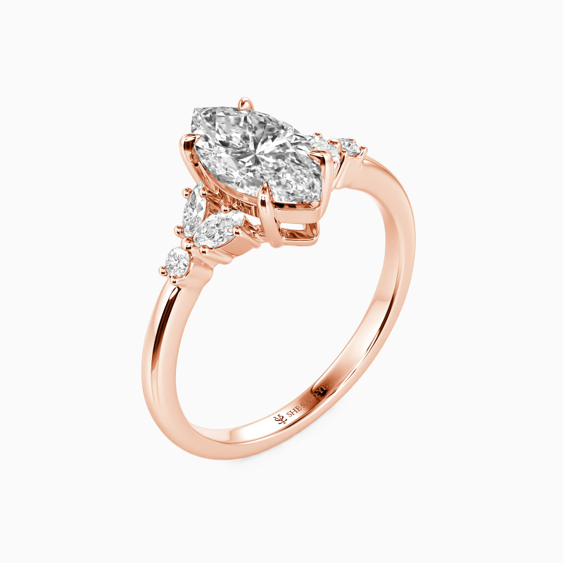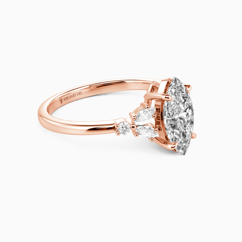 "The Fearless Love" 1ct Marquise Cut Cluster Side Stone Engagement Ring