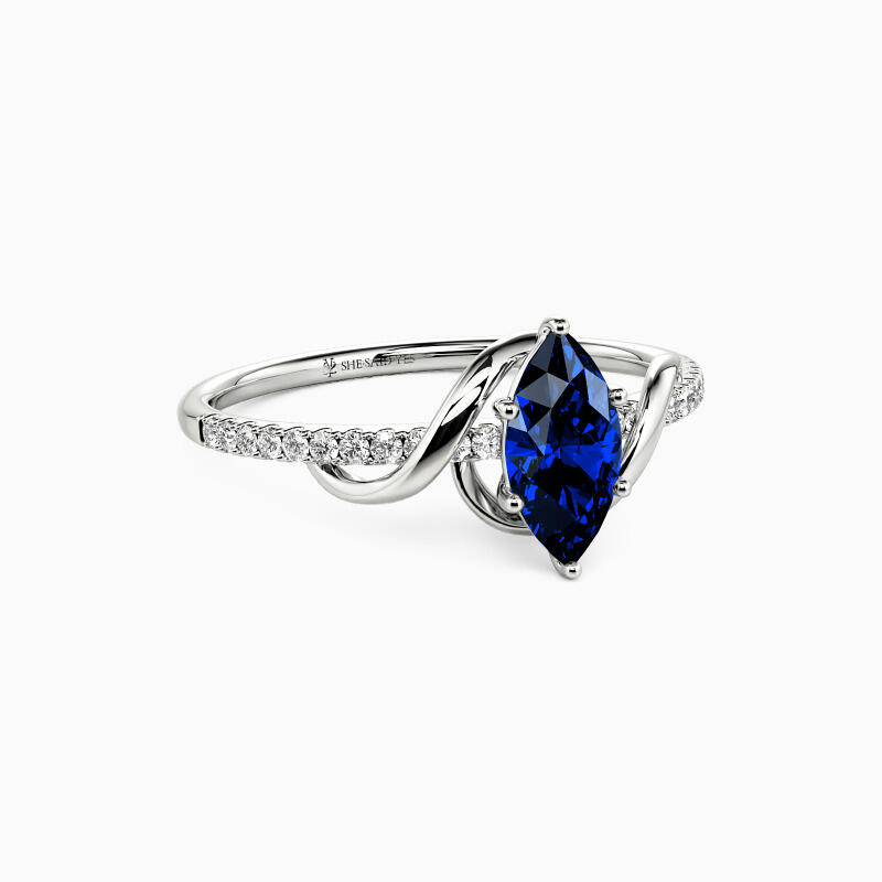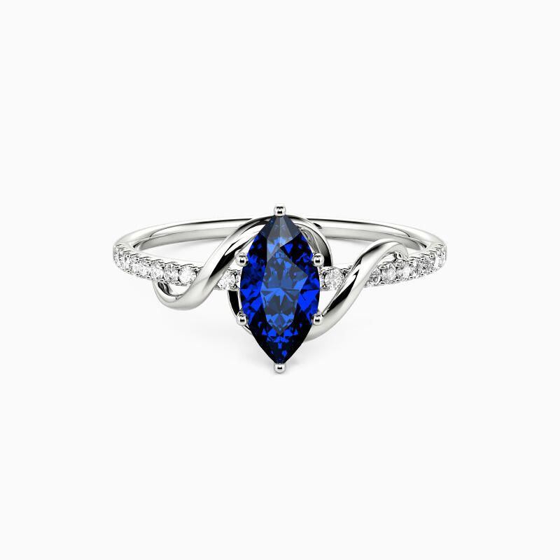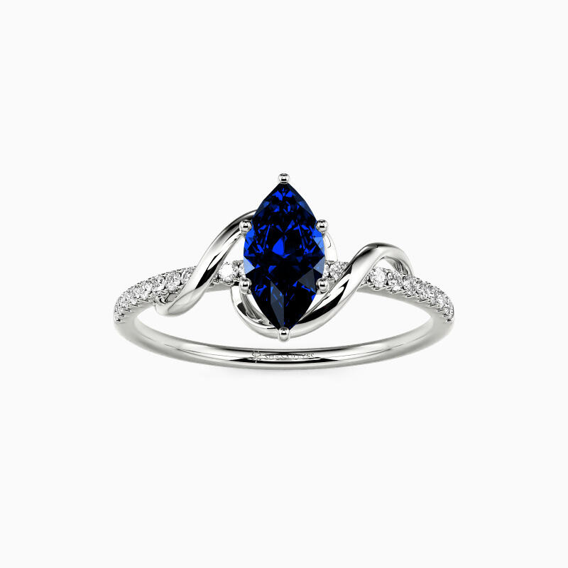 This side stone engagement ring dazzles you with a marvelous marquise-cut center stone held in a prong setting. Further embellishing the ring is an array of well-arranged glistening accents studded in a pavé setting on the twisted shank for a stylish appeal. Promise to love her for a lifetime with this ring will surely be an intelligent choice.