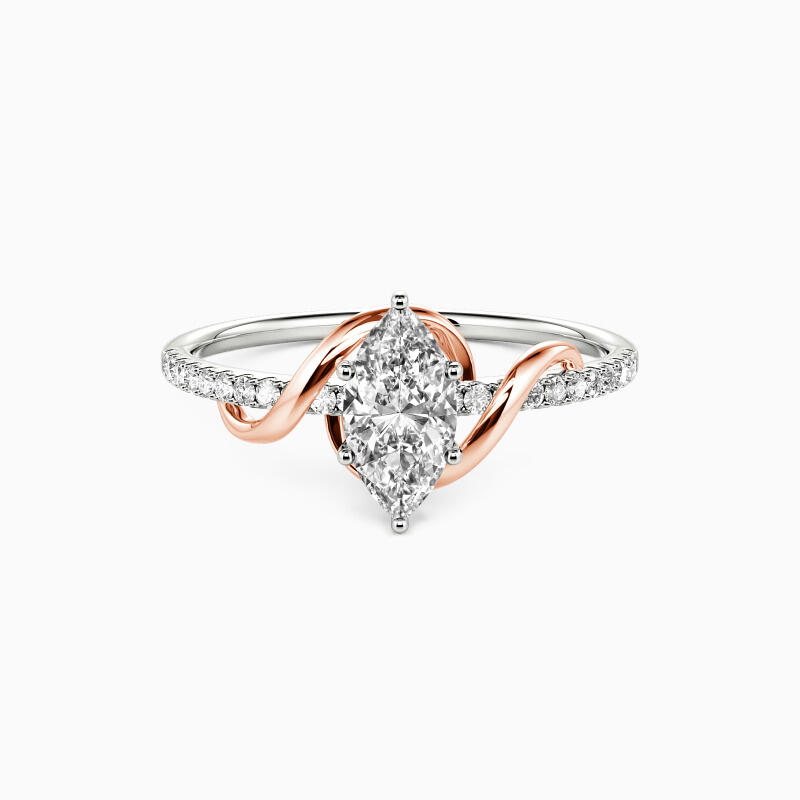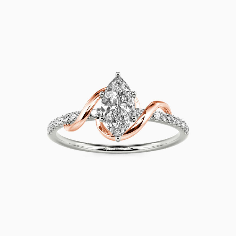 This side stone engagement ring dazzles you with a marvelous marquise-cut center stone held in a prong setting. Further embellishing the ring is an array of well-arranged glistening accents studded in a pavé setting on the twisted shank for a stylish appeal. Promise to love her for a lifetime with this ring will surely be an intelligent choice.