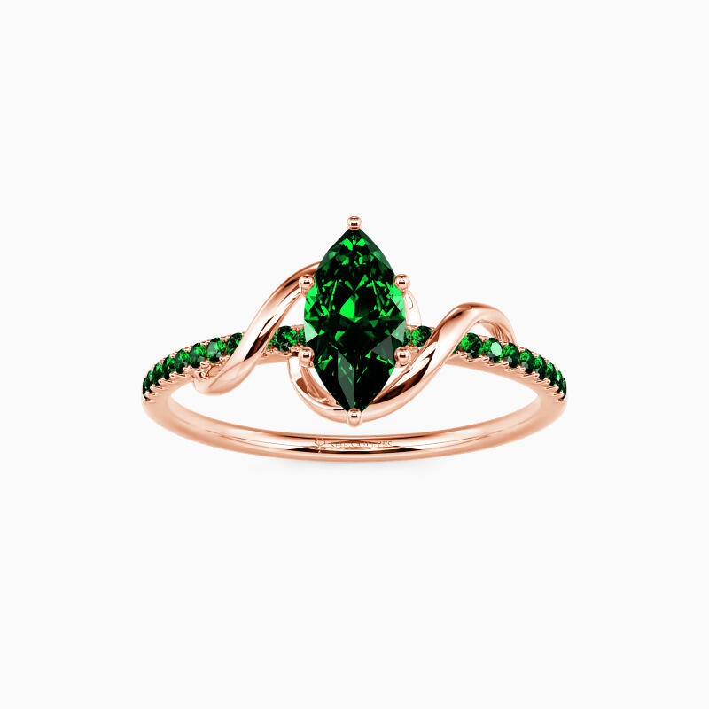 This side stone engagement ring dazzles you with a marvelous marquise-cut center stone held in a prong setting. Further embellishing the ring is an array of well-arranged glistening accents studded in a pavé setting on the twisted shank for a stylish appeal. Promise to love her for a lifetime with this ring will surely be an intelligent choice.