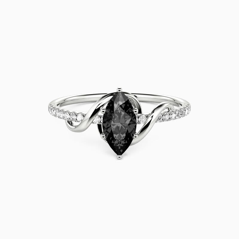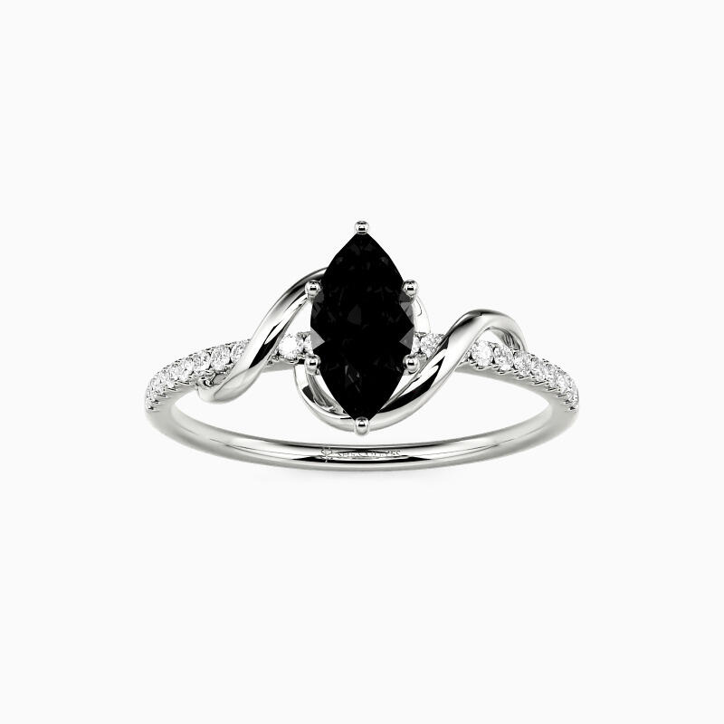 This side stone engagement ring dazzles you with a marvelous marquise-cut center stone held in a prong setting. Further embellishing the ring is an array of well-arranged glistening accents studded in a pavé setting on the twisted shank for a stylish appeal. Promise to love her for a lifetime with this ring will surely be an intelligent choice.