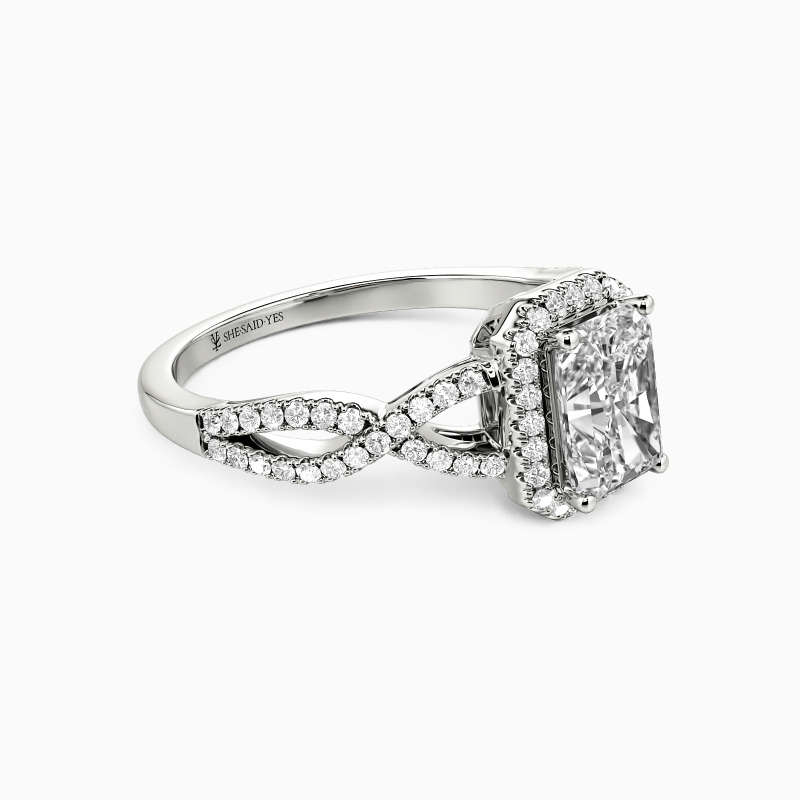 "Twist of Fate" Radiant Cut Halo Engagement Ring