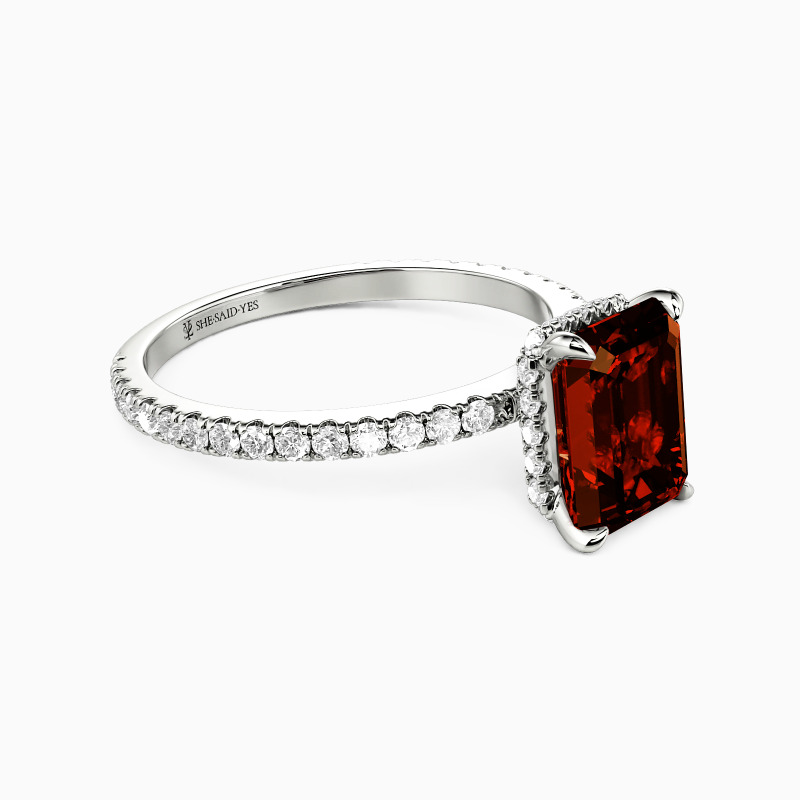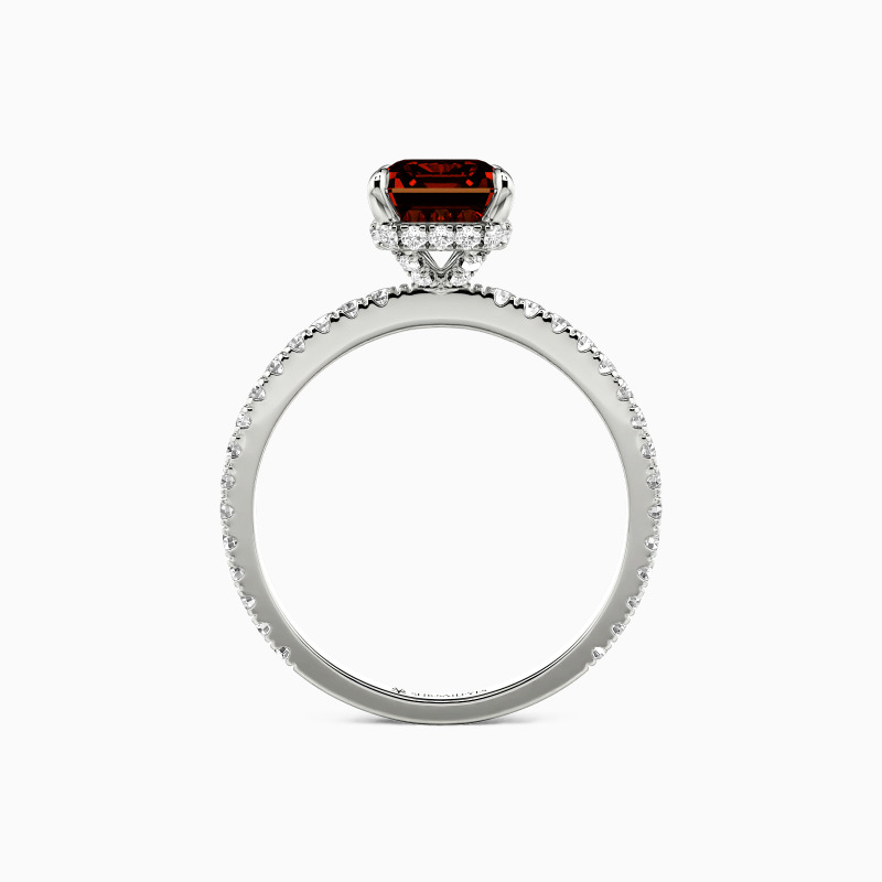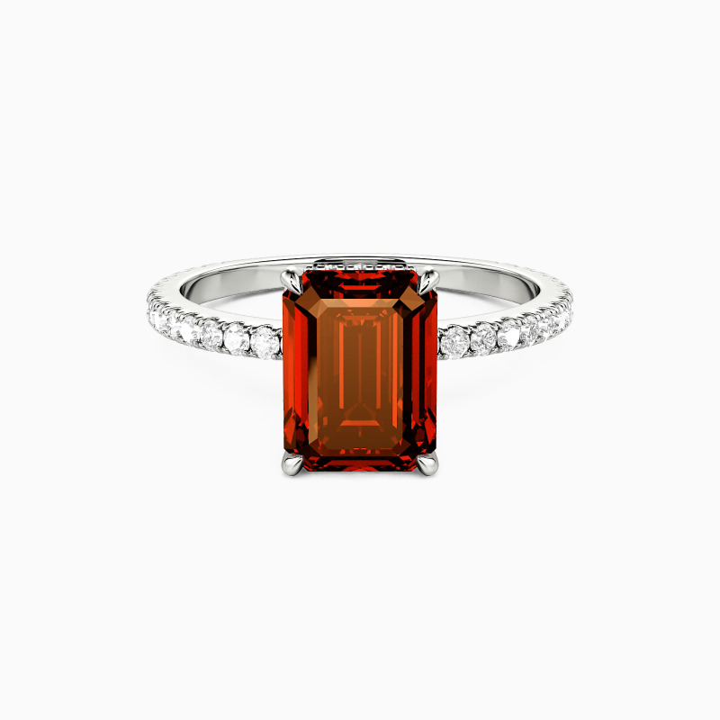 A study in quiet luxury, this engagement ring features an elegant emerald-cut center stone, cradled by a pavé-set basket and flowing seamlessly into a pavé band. The play of light across each facet creates understated brilliance—a design that speaks volumes in refined simplicity.