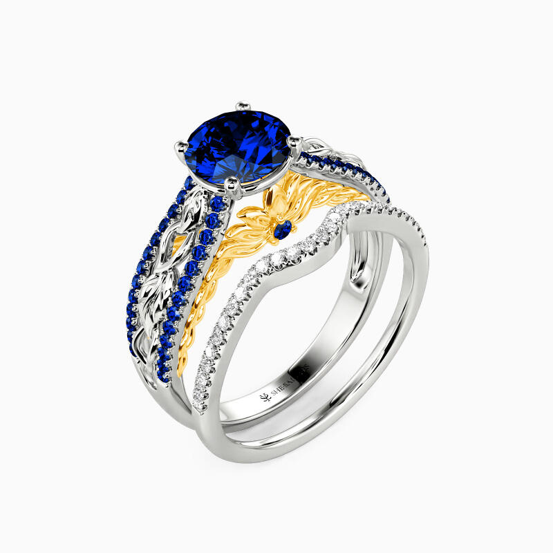 Reflect your natural kind of love with this natural-inspired bridal set. Precious vines and leaves are inside around the center stone to complete this unique design. And other accents capture the beauty and brilliance in nature around us. The matching band beams with eye-catching sparkle and fire. I truly believe when God made you, he was really thinking about me.