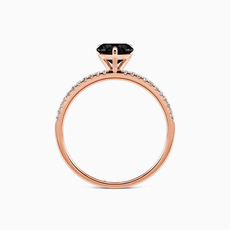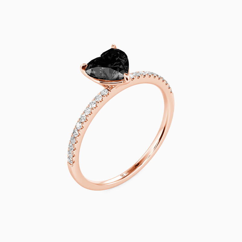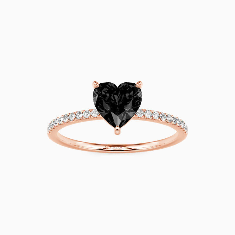 Attracting your eyes with the shimmering heart-cut center stone in a classic prong setting, this delicate engagement ring adds extra splendid charm and magnificence to you by studding a series of brilliant pavéd accents on the shank. You are magical, and you play through my mind like a symphony.